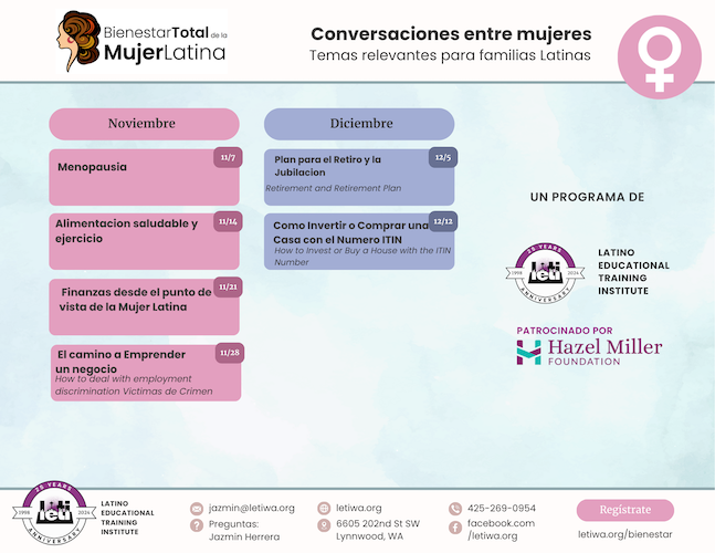 ¿Le gustaría participar en nuestra próxima serie? ¡ Registrese aquí!! Para más información puede enviar un mensaje de WhatsApp a Jazmin Herrera al (425) 242-1027 o enviar correo electrònico a jazmin@letiwa.org.
